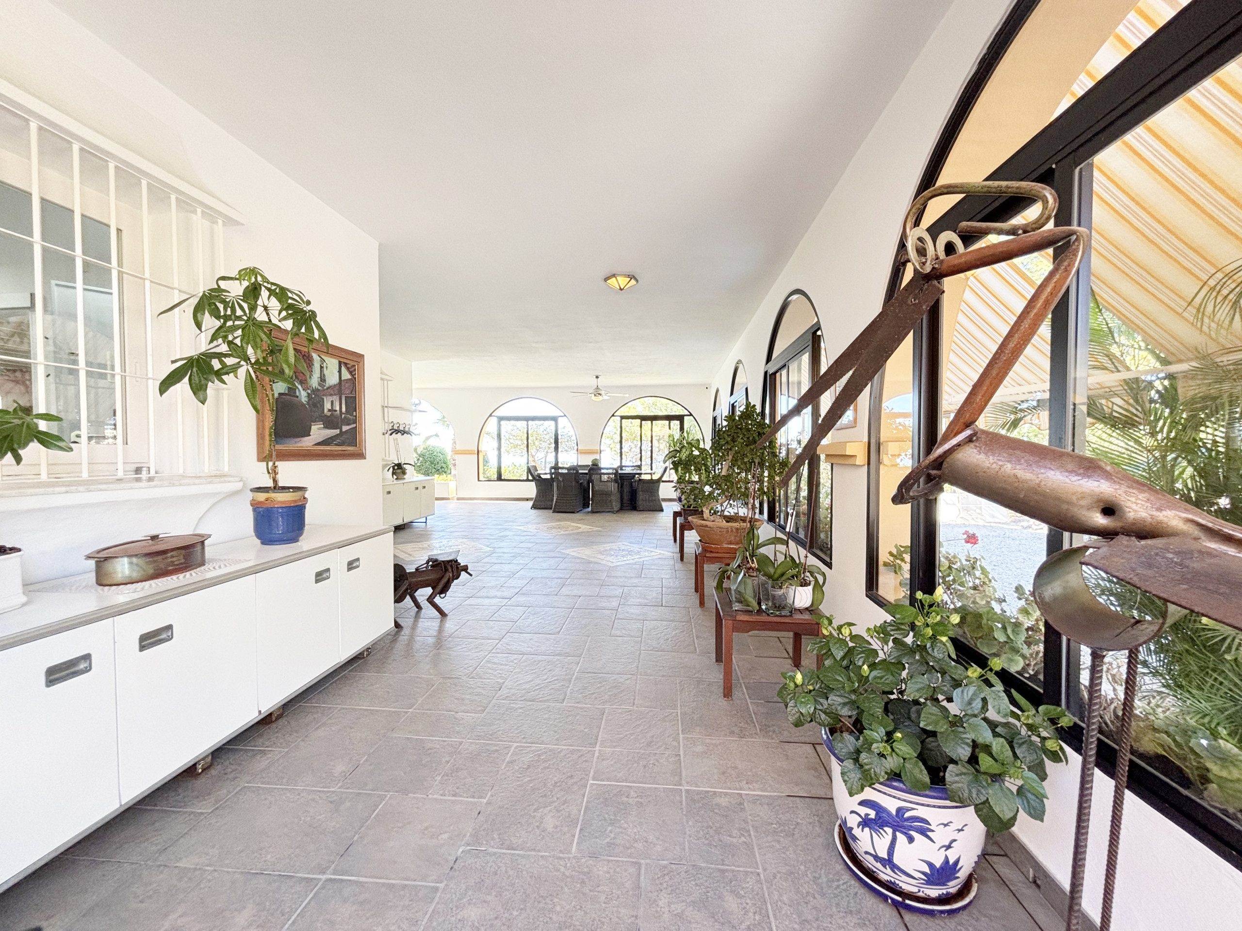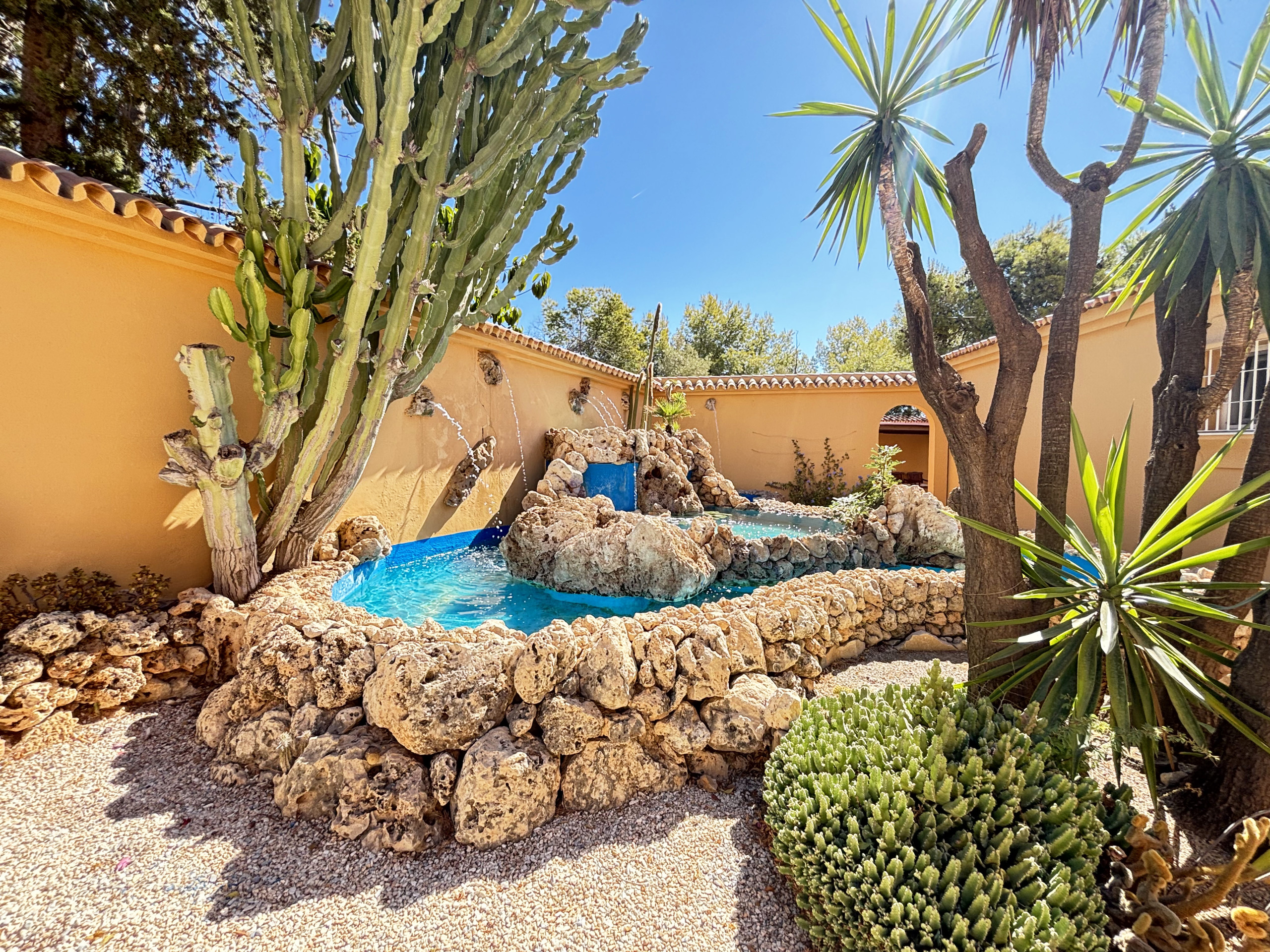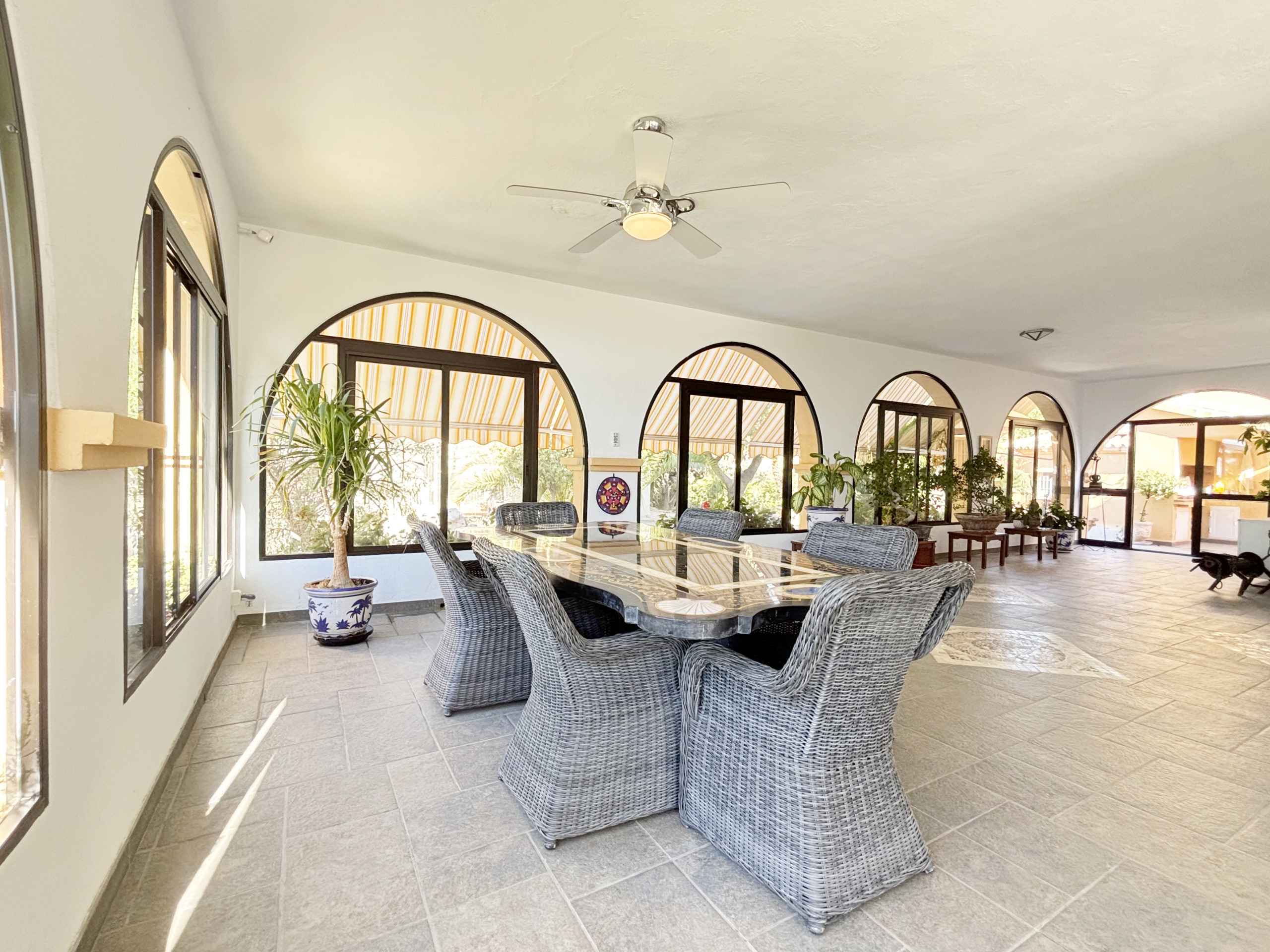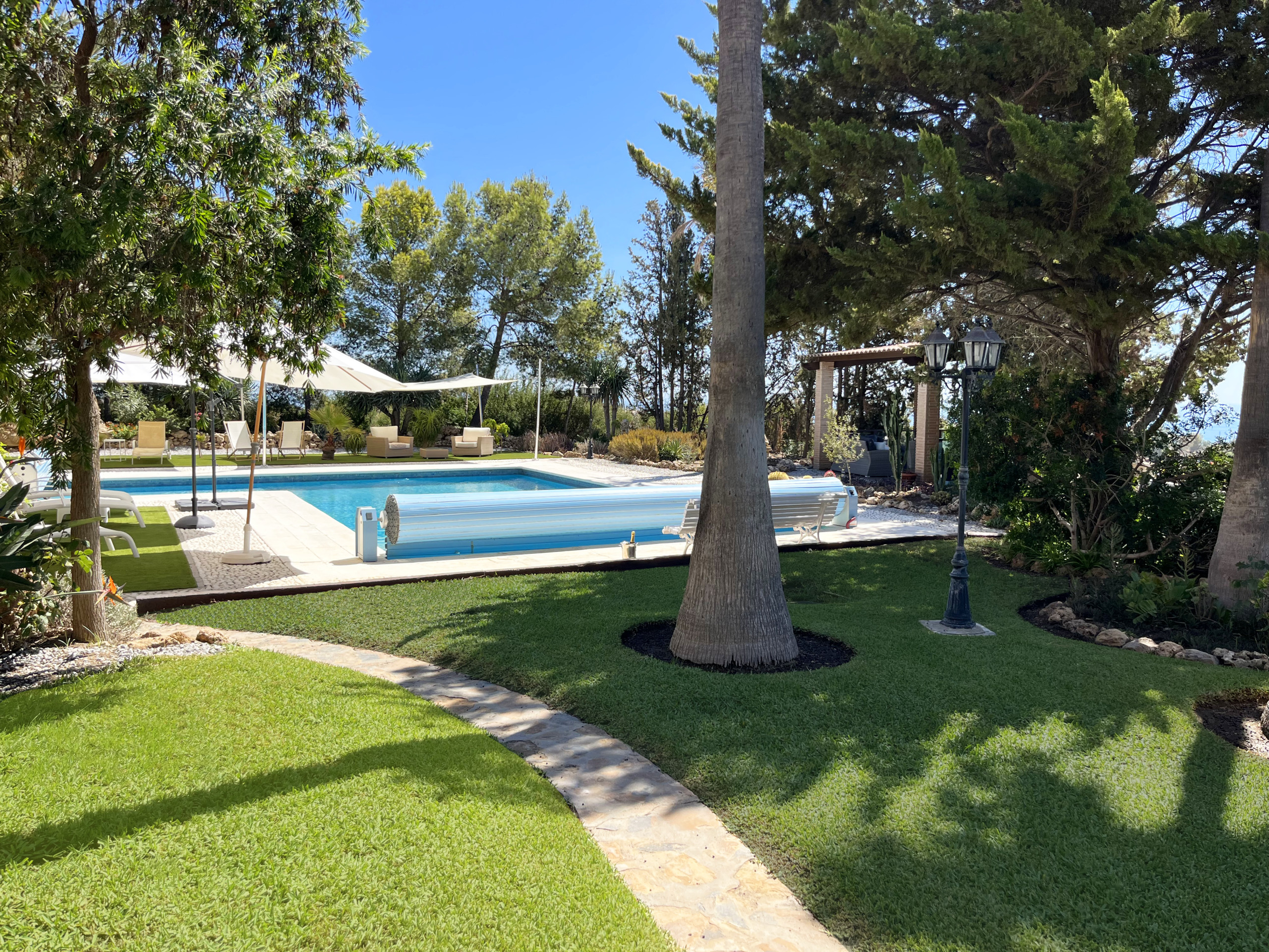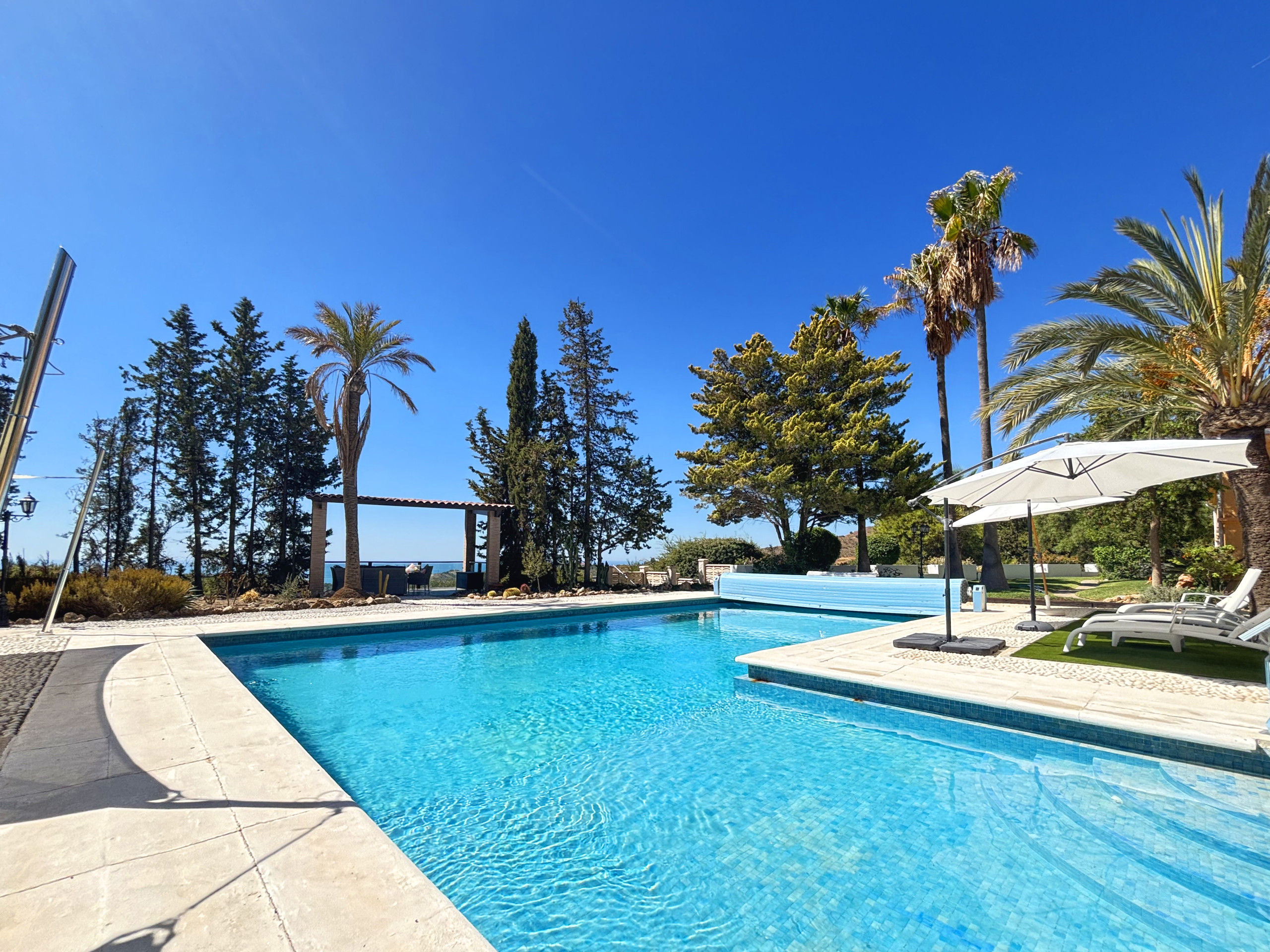 The outdoor space is one of the main features of this property. The estate offers a large private pool with unobstructed sea views, surrounded by well-kept gardens with palm trees, fruit trees, and landscaped areas that create a relaxing and pleasant environment.