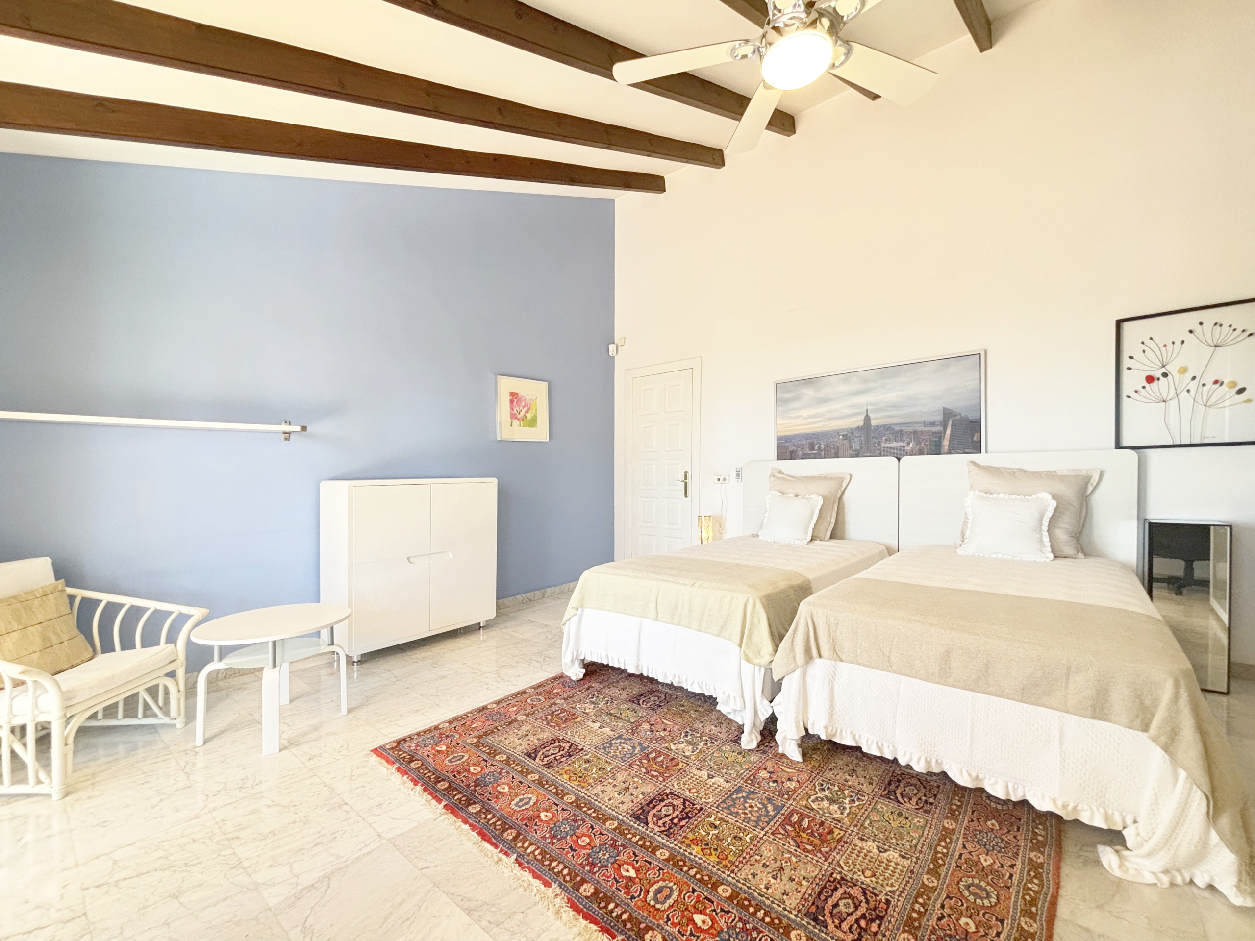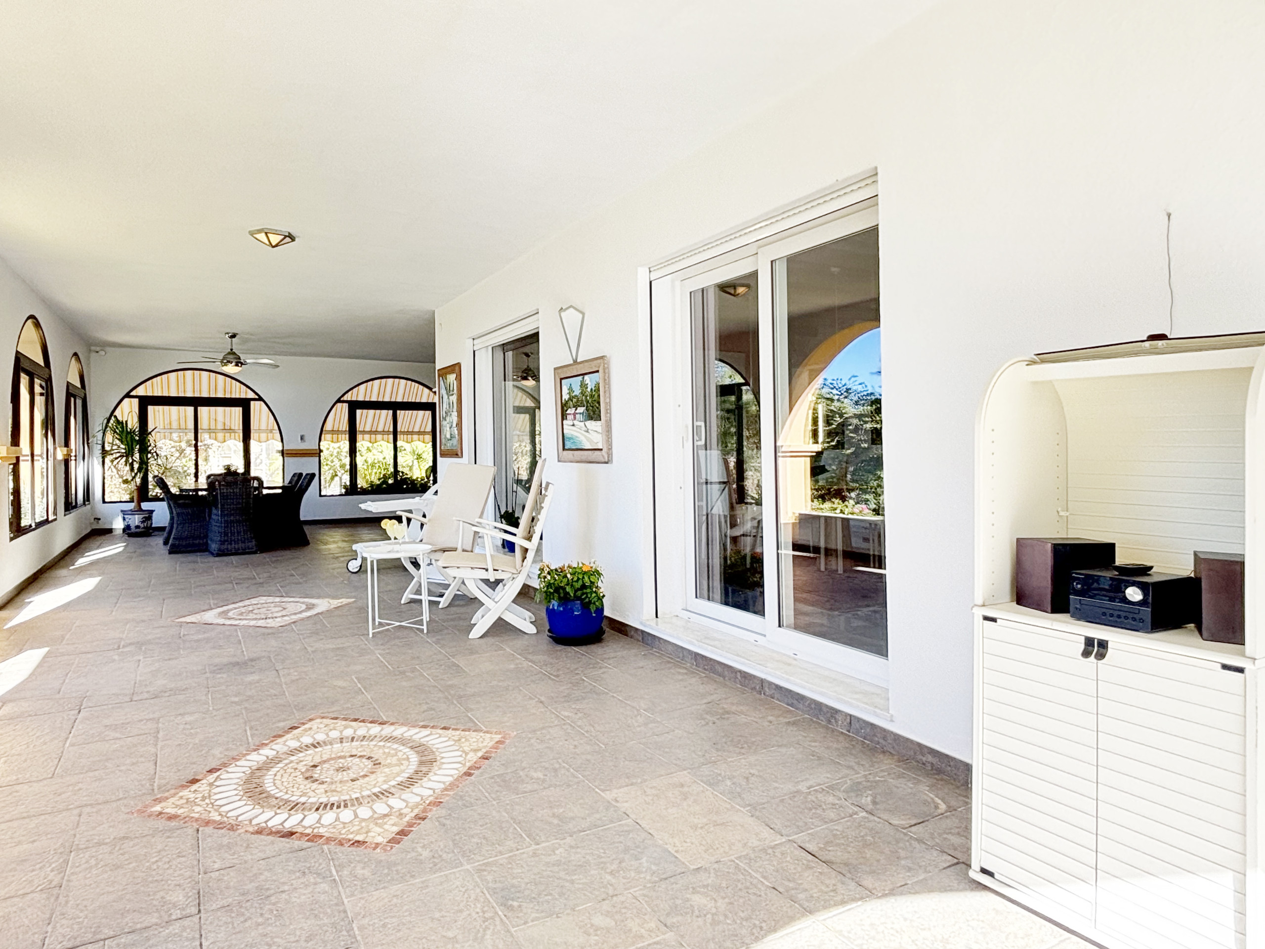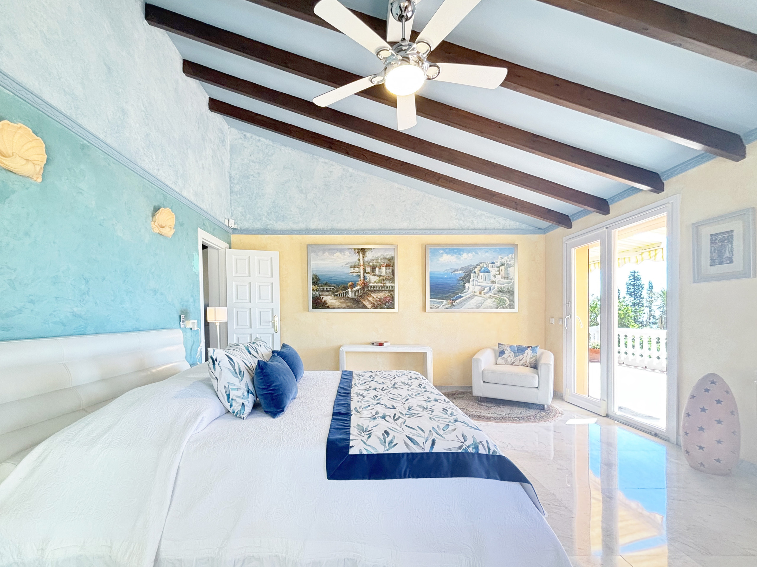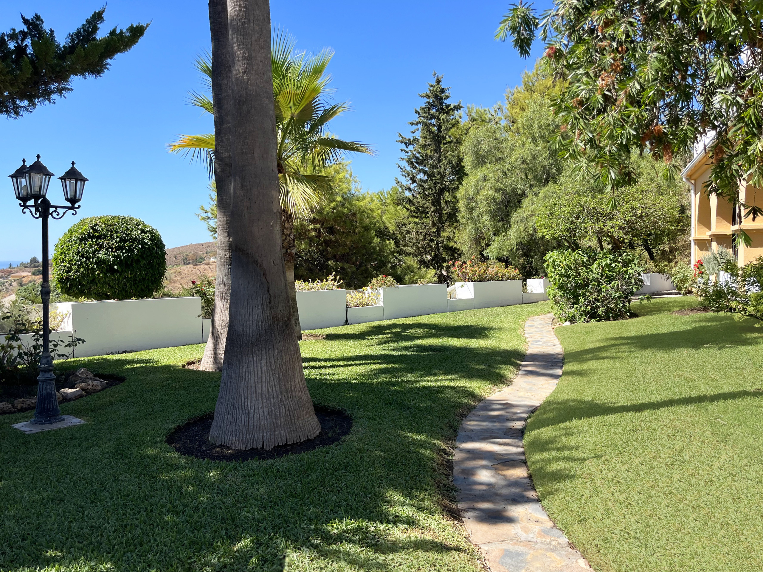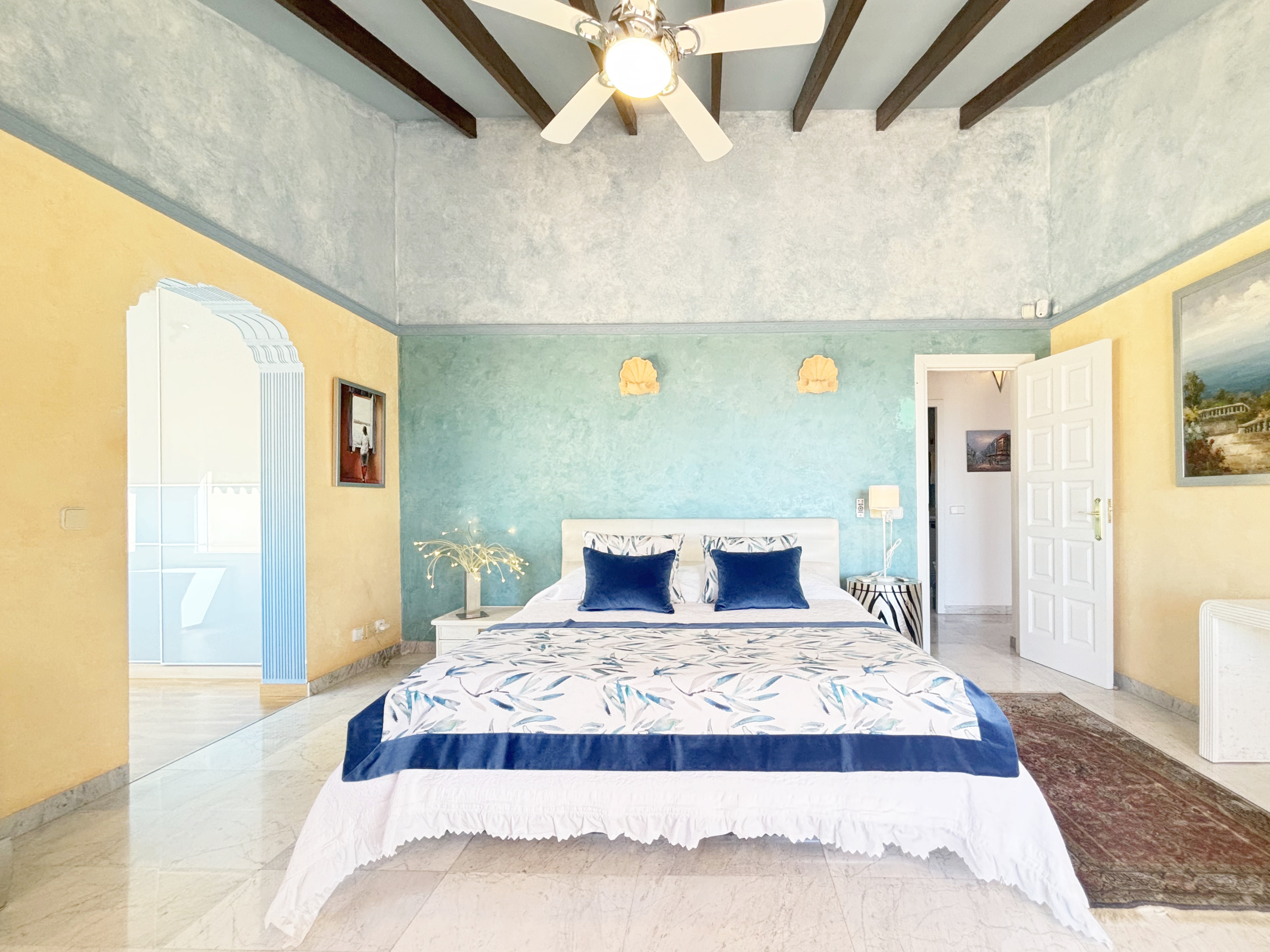 The outdoor space is one of the main features of this property. The estate offers a large private pool with unobstructed sea views, surrounded by well-kept gardens with palm trees, fruit trees, and landscaped areas that create a relaxing and pleasant environment.