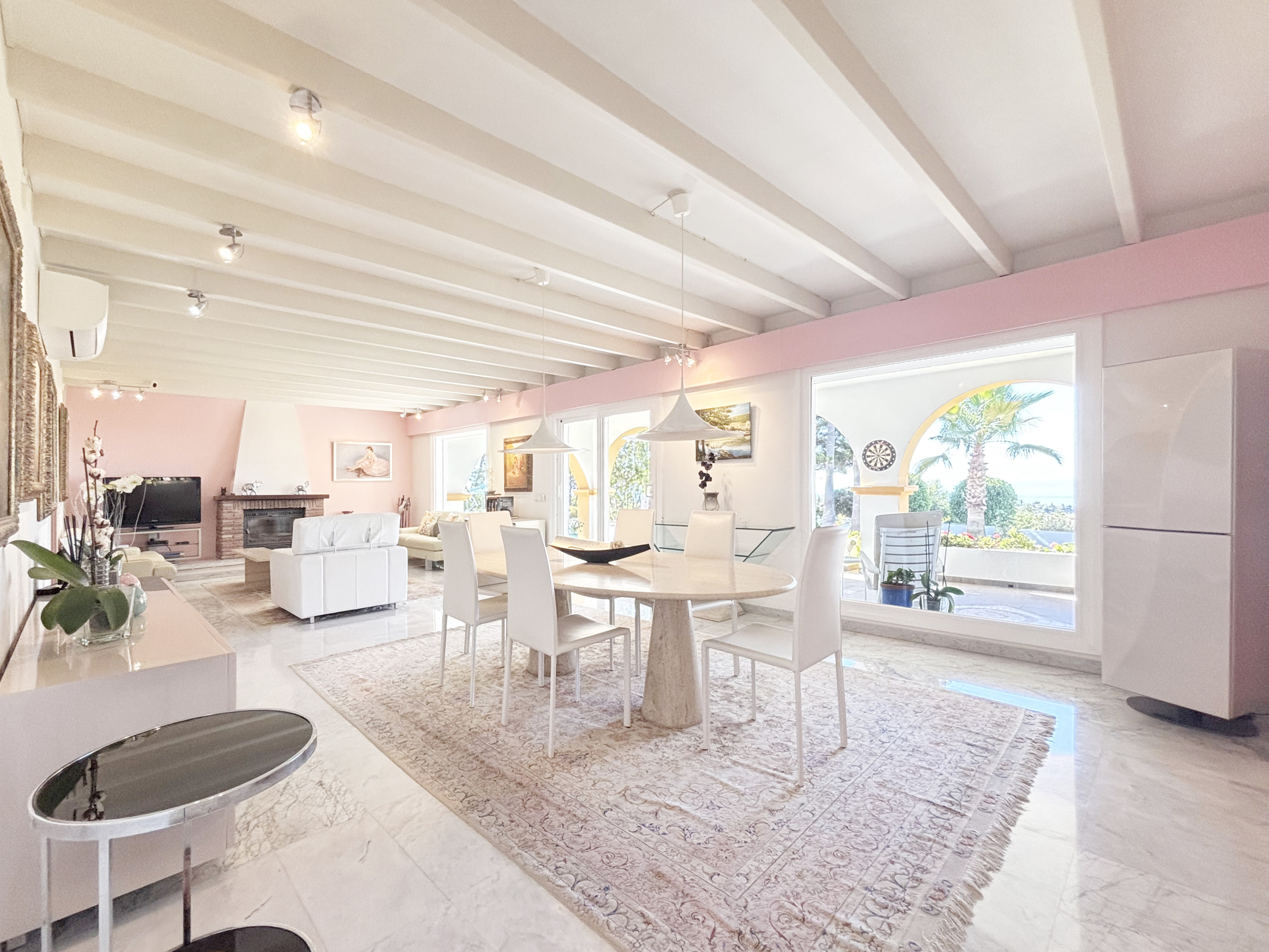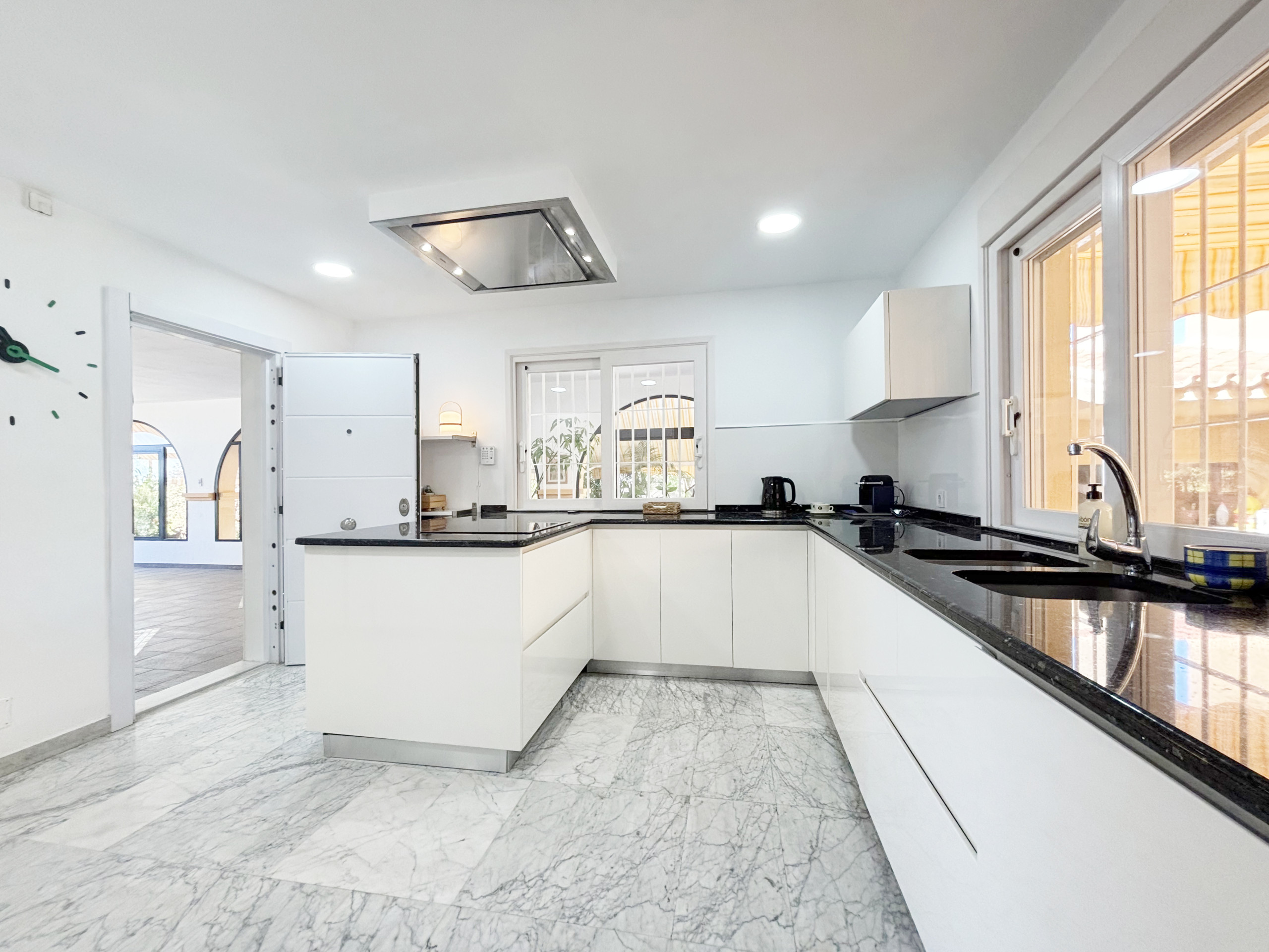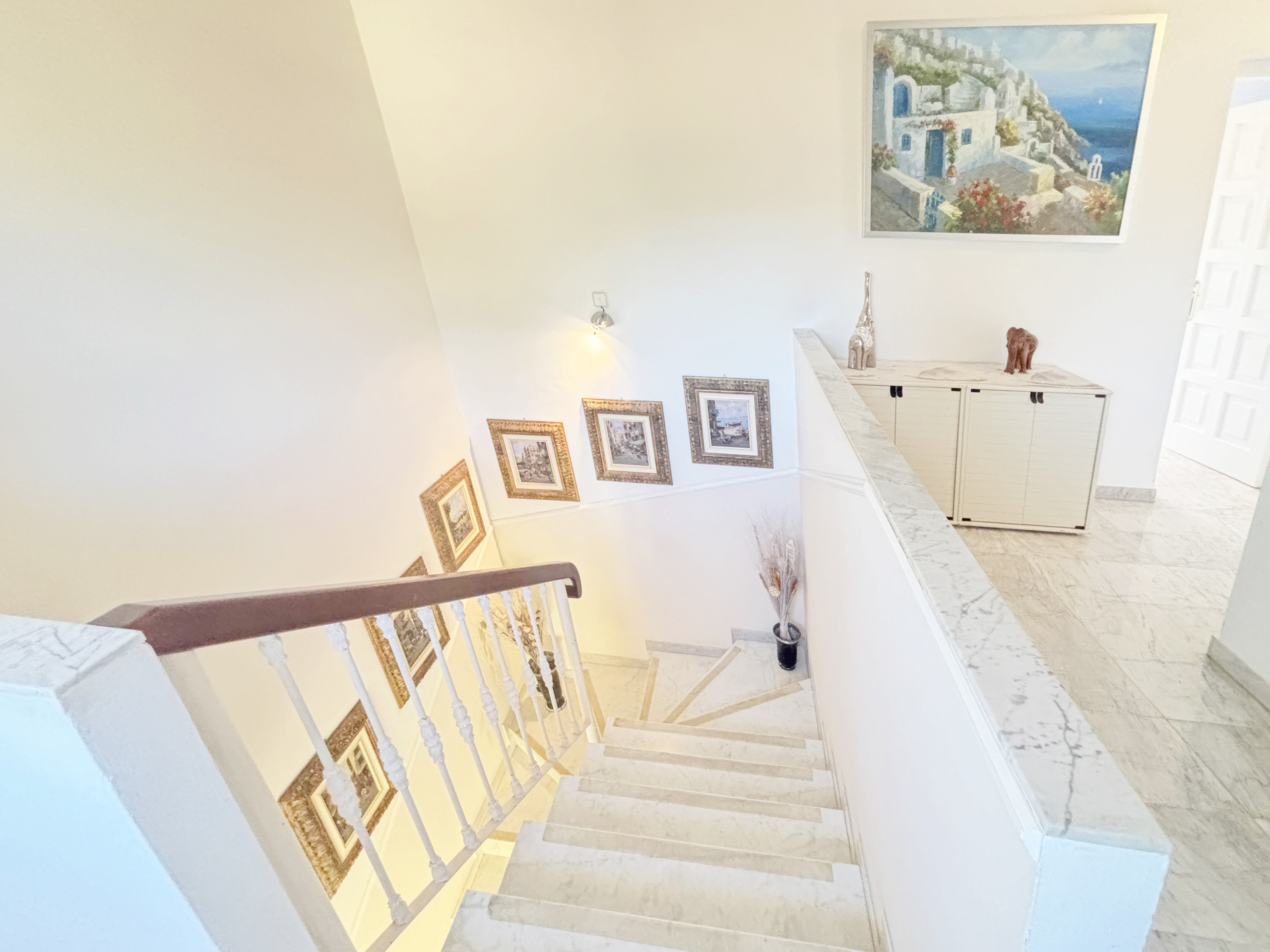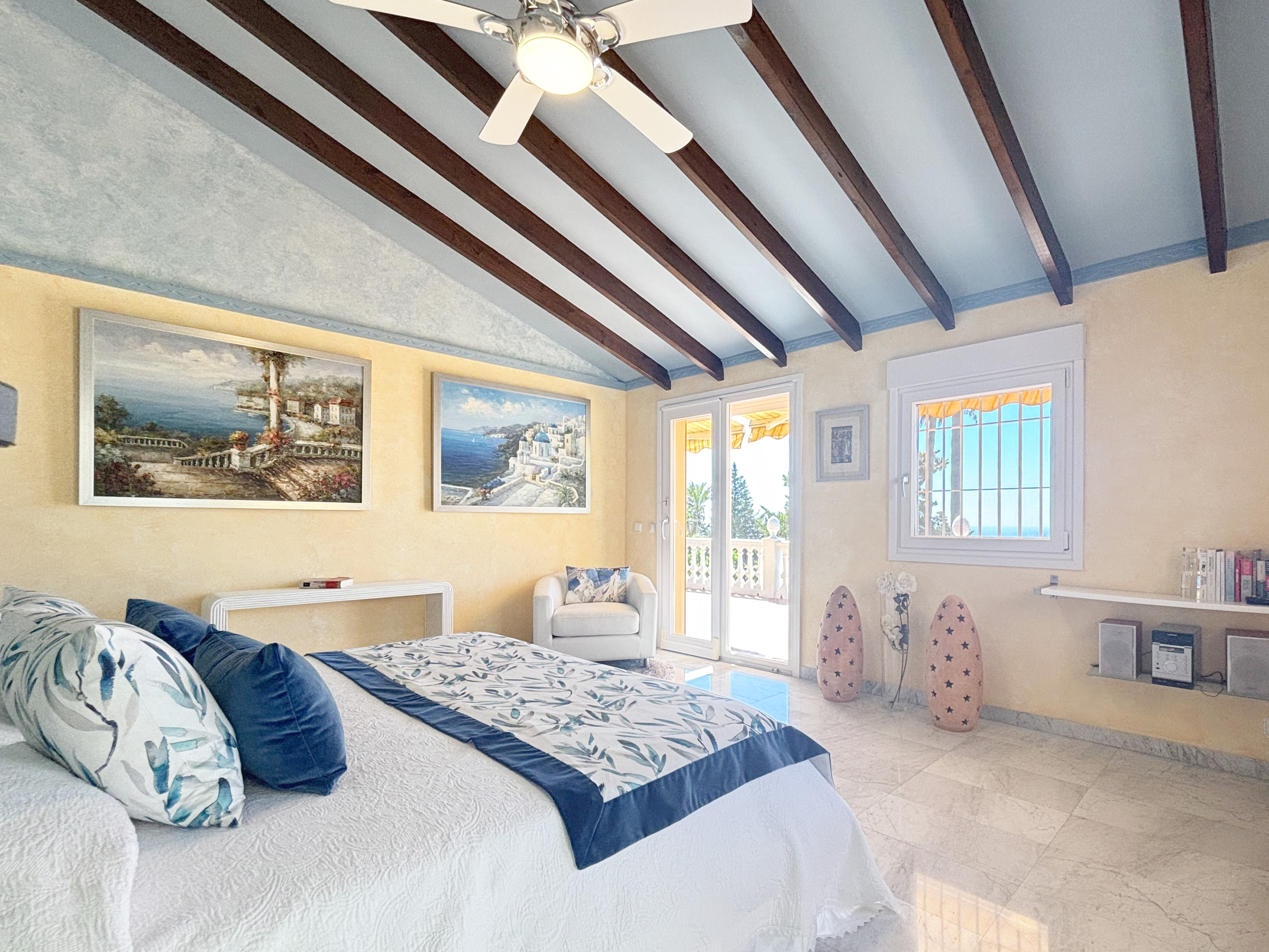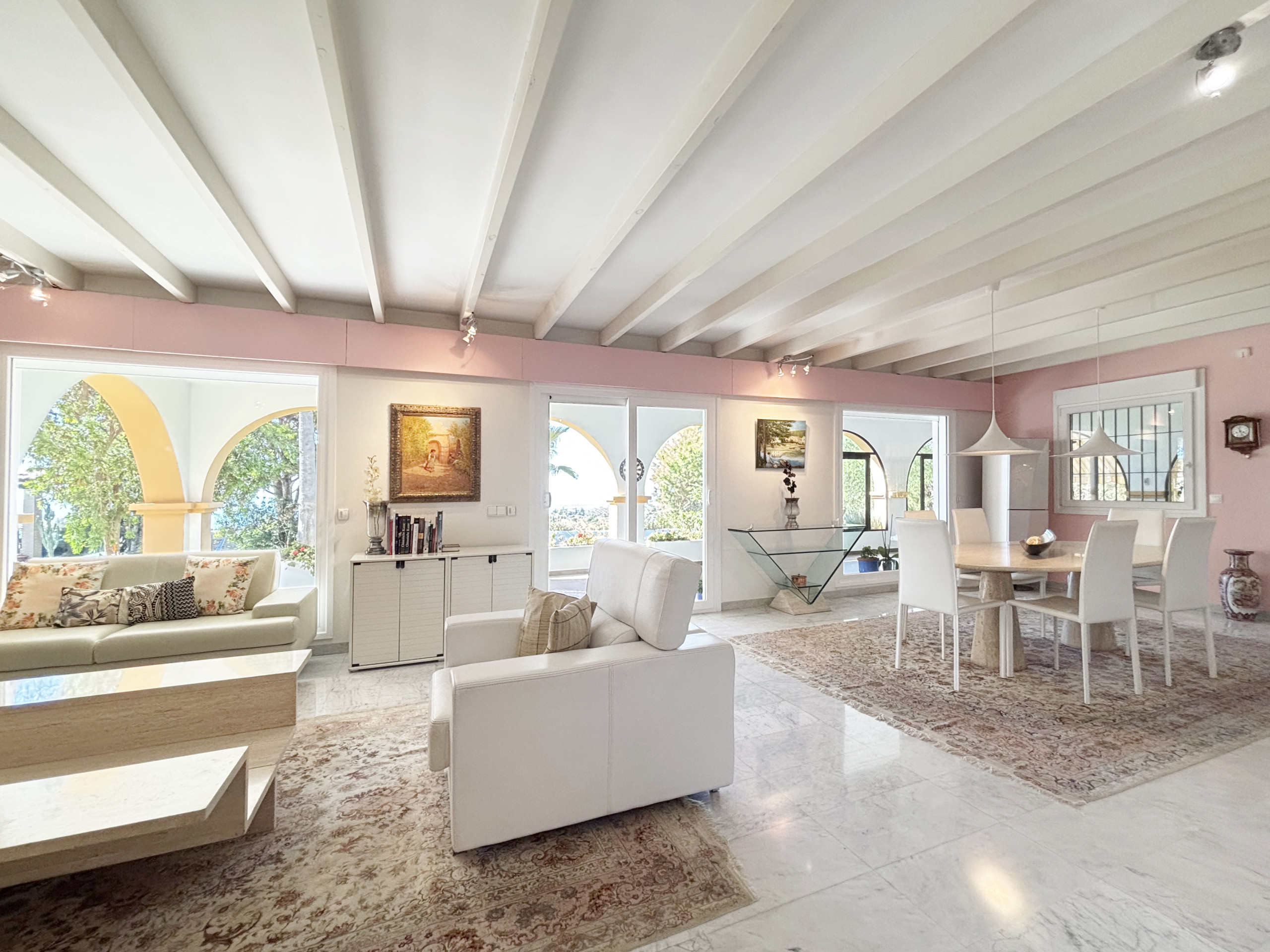 The outdoor space is one of the main features of this property. The estate offers a large private pool with unobstructed sea views, surrounded by well-kept gardens with palm trees, fruit trees, and landscaped areas that create a relaxing and pleasant environment.