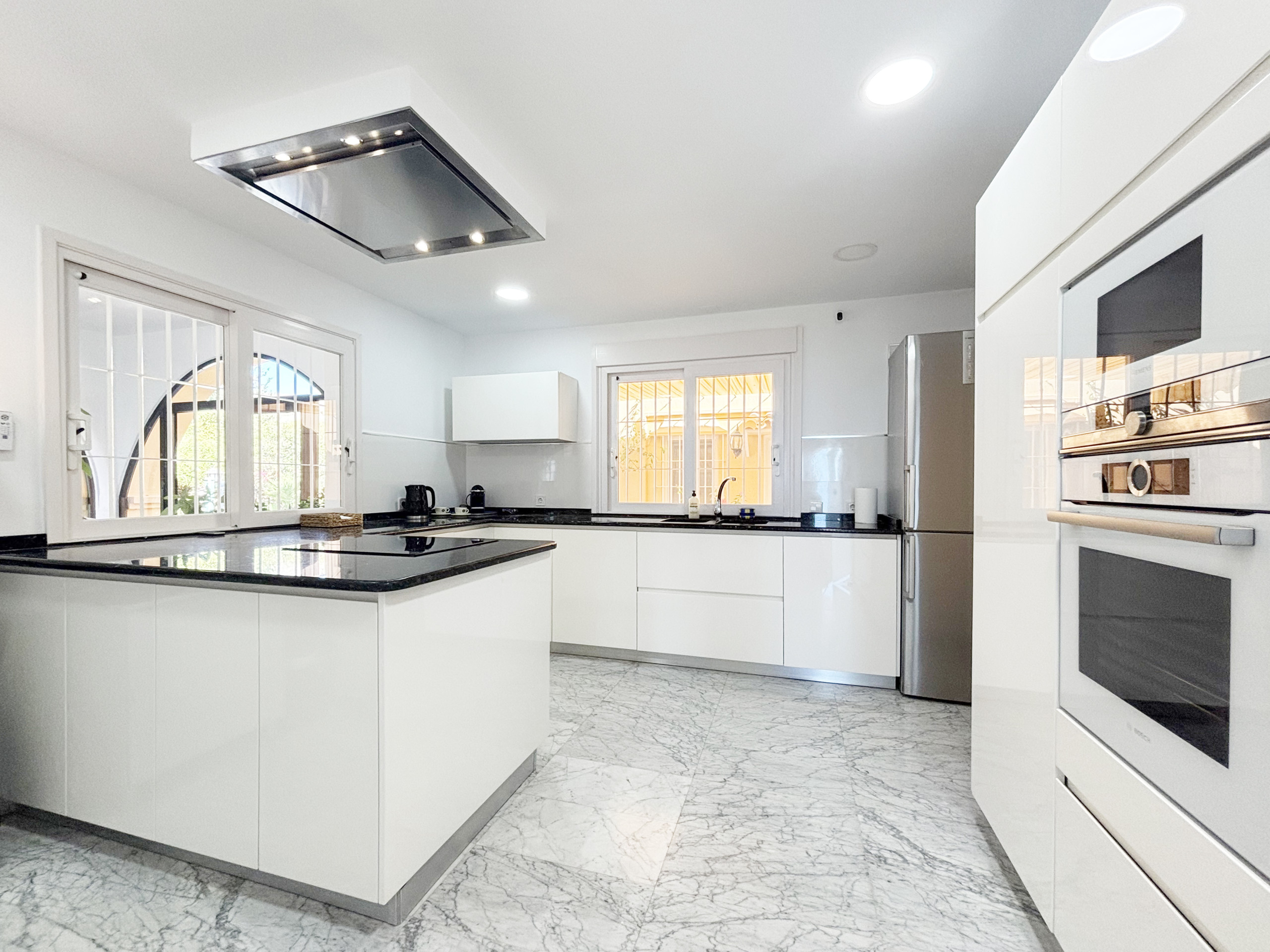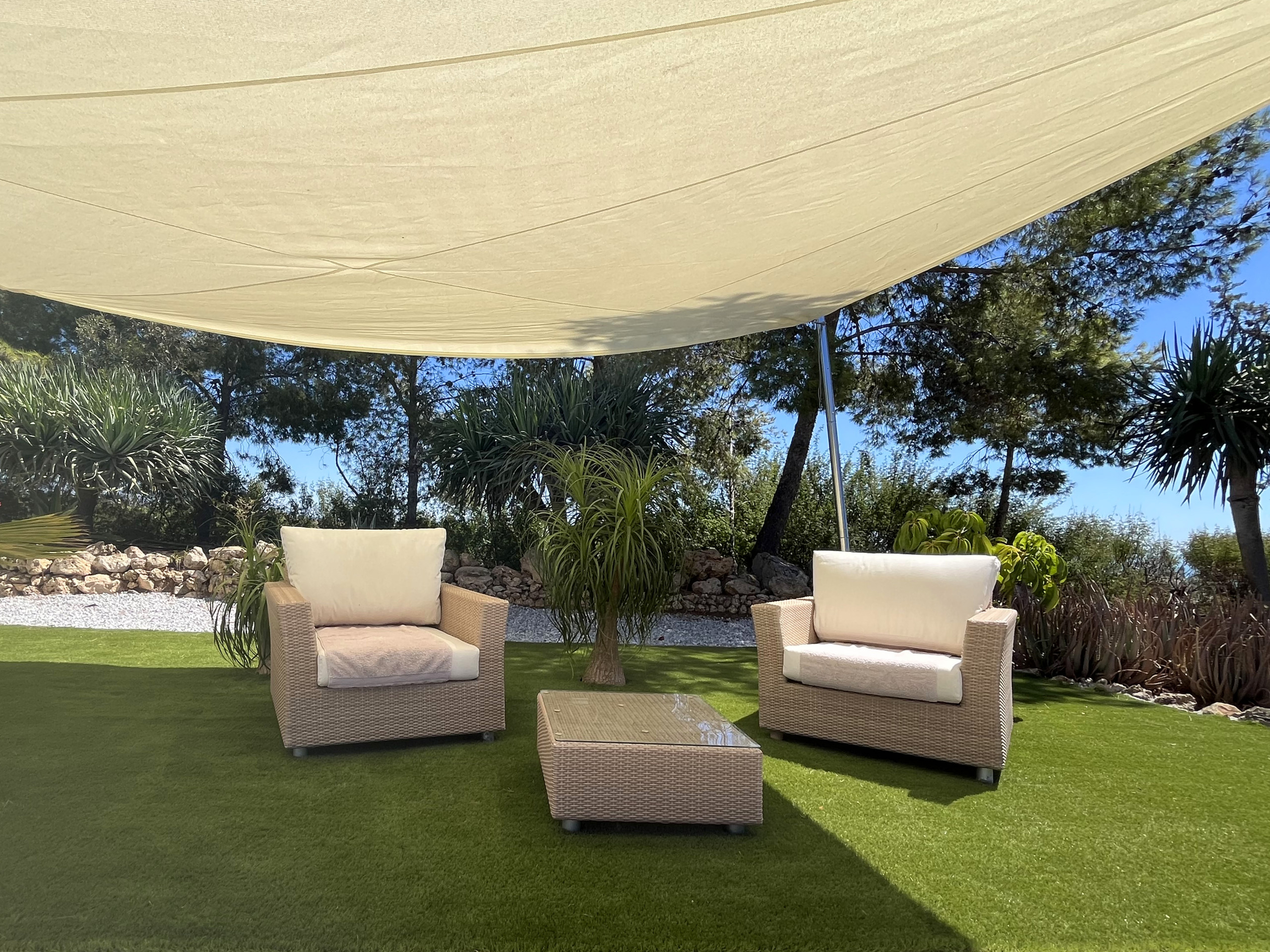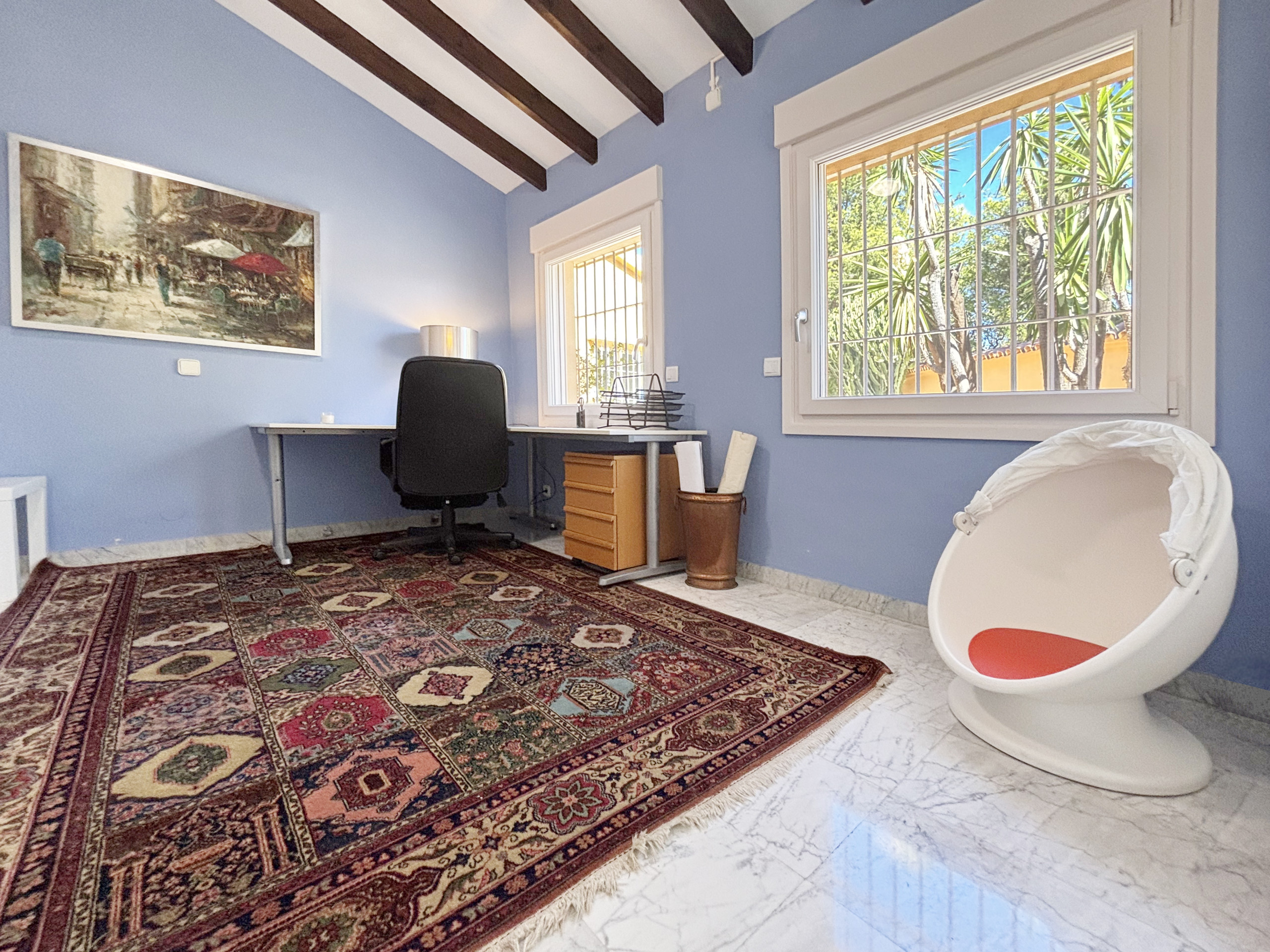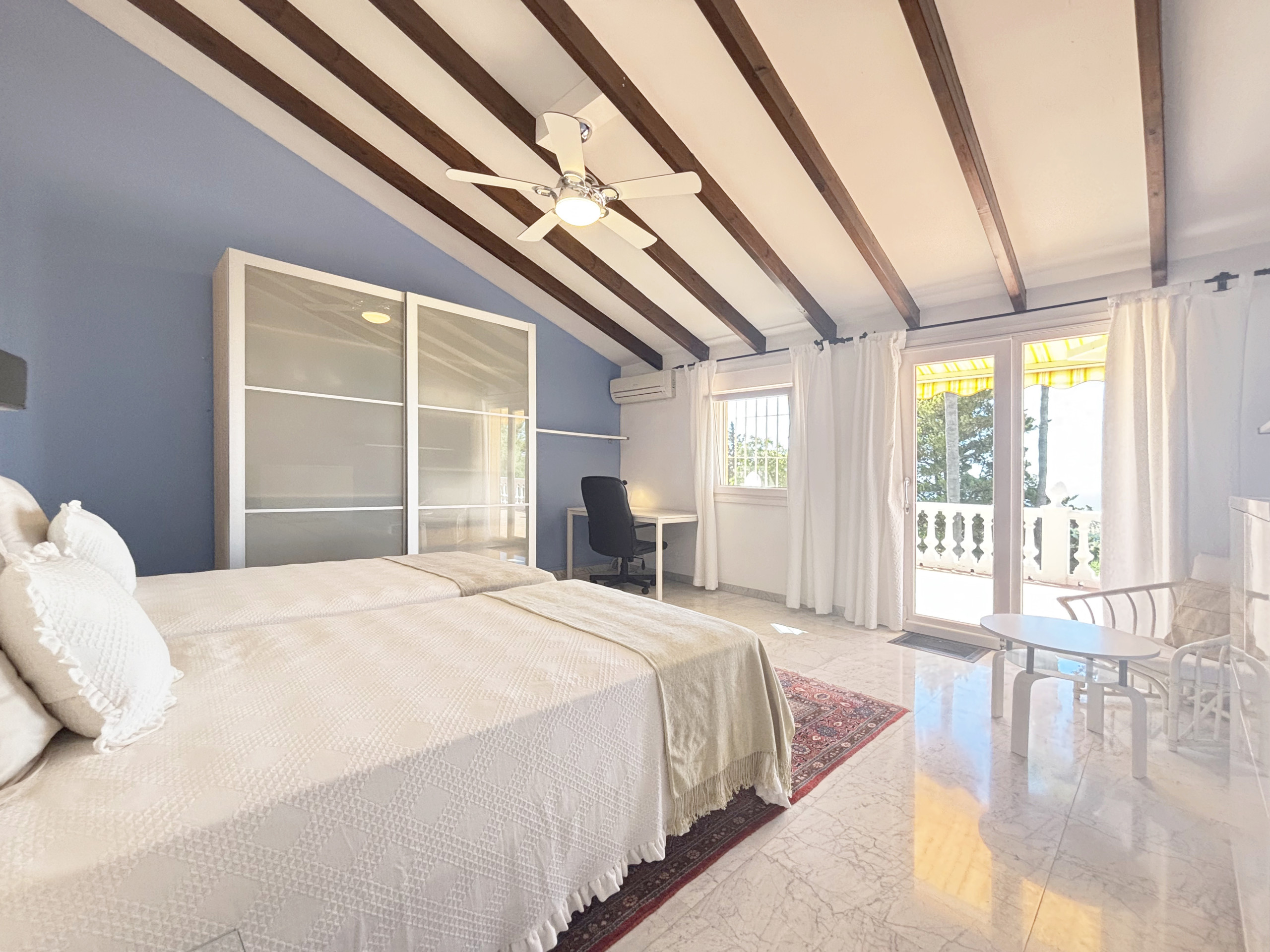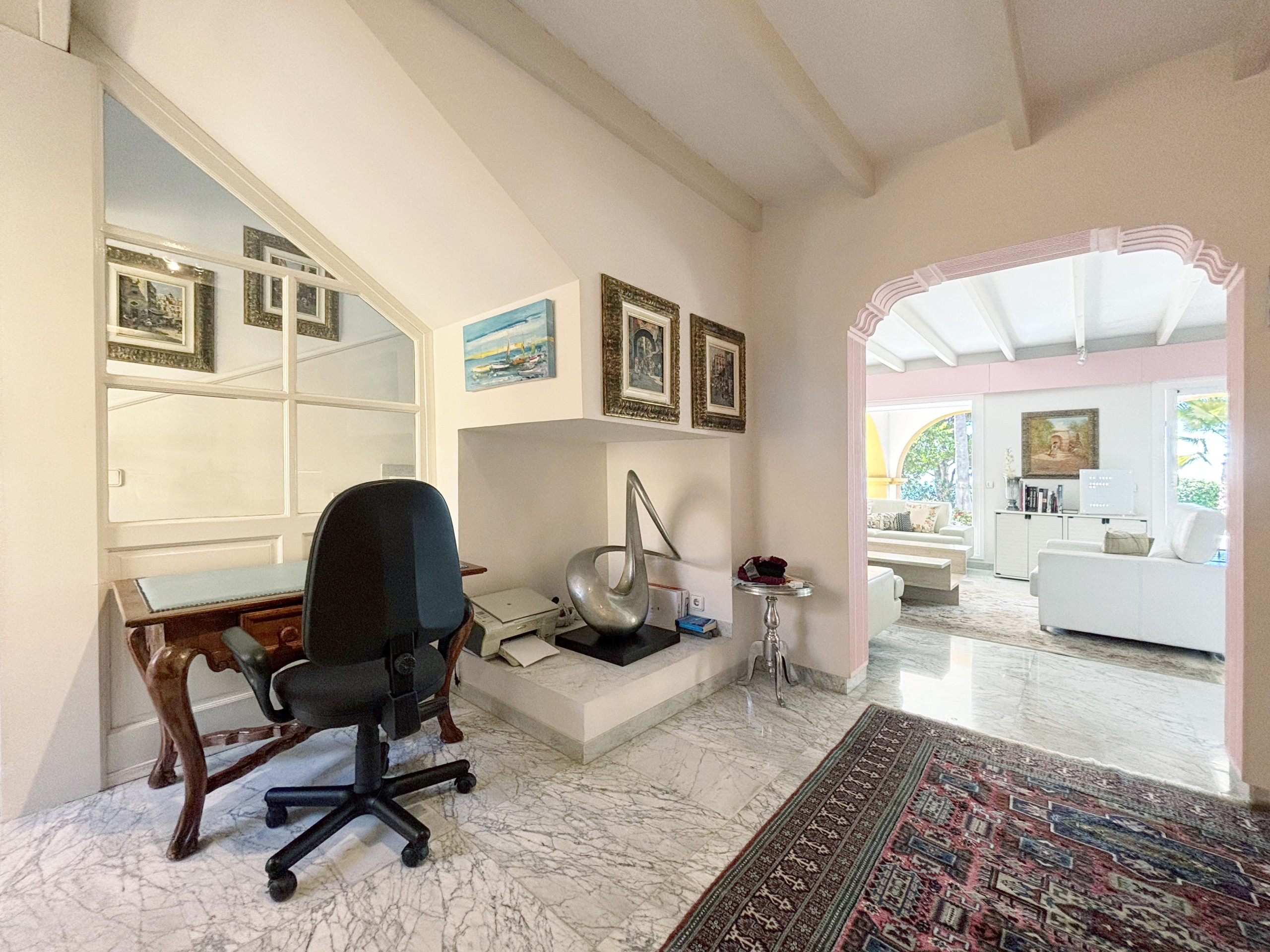 The outdoor space is one of the main features of this property. The estate offers a large private pool with unobstructed sea views, surrounded by well-kept gardens with palm trees, fruit trees, and landscaped areas that create a relaxing and pleasant environment.