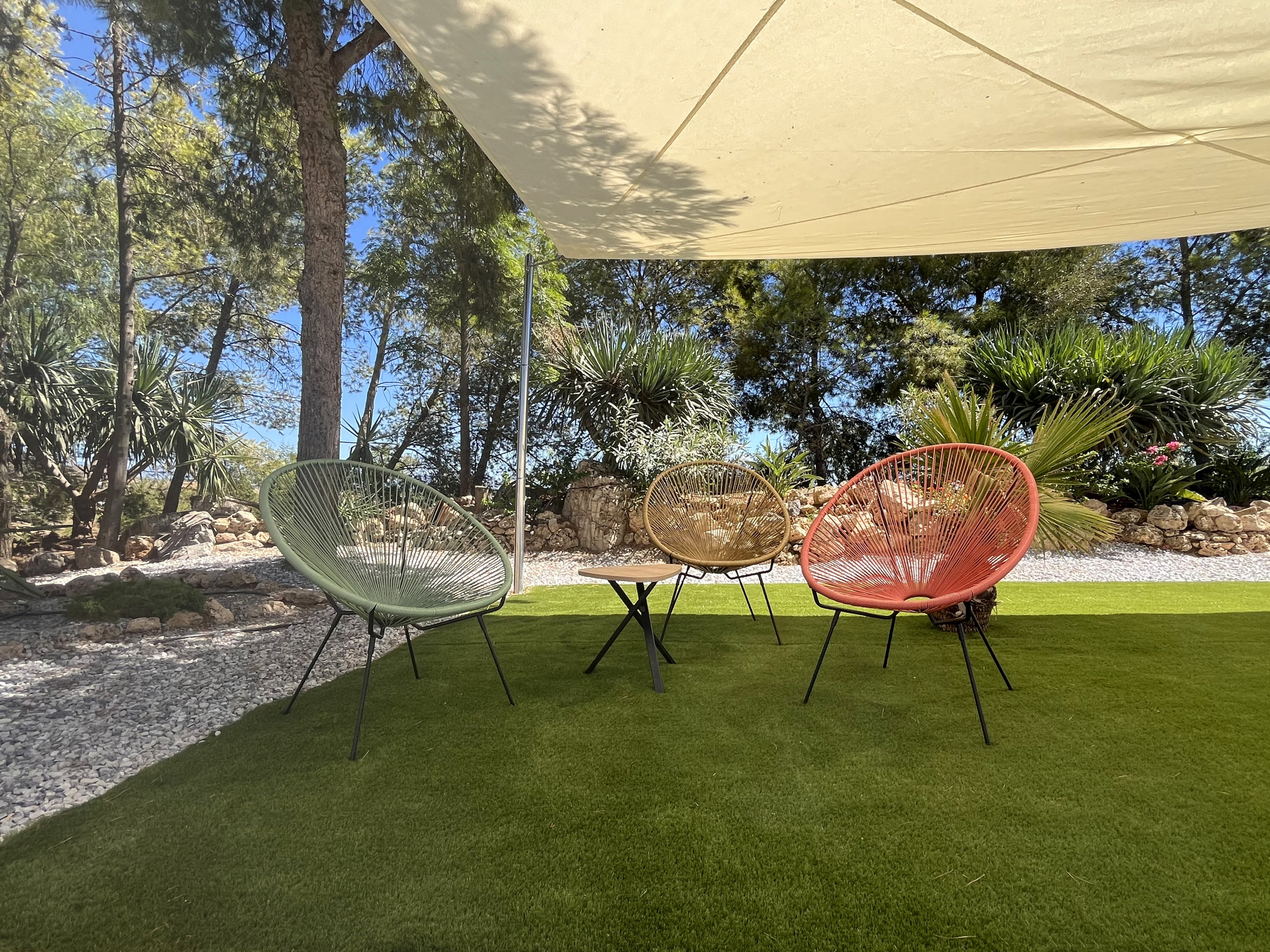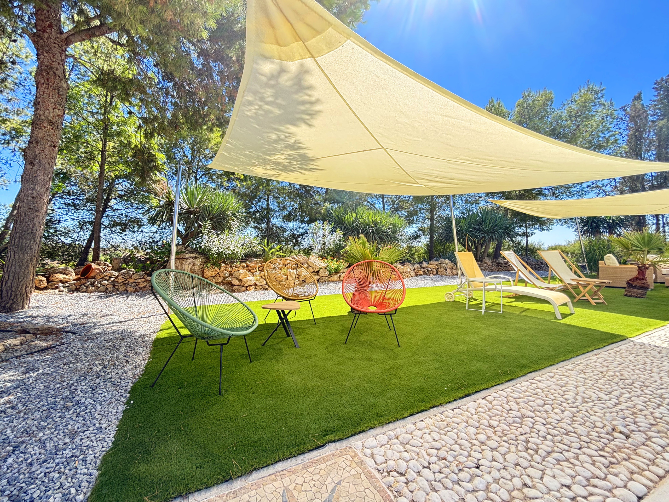 Guests can enjoy a fully equipped barbecue area, chill-out areas, sun loungers, terraces, and multiple corners designed for reading, sunbathing, or simply relaxing in nature.